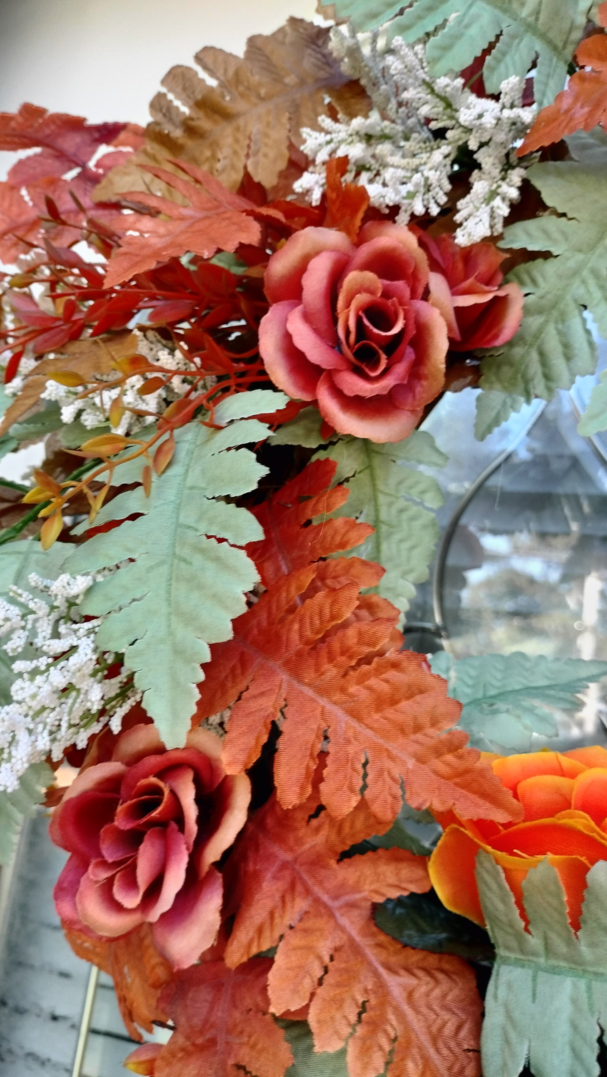 Rustic Autumn Rose & Fern grapevine Wreath (Custom Order Pete)
